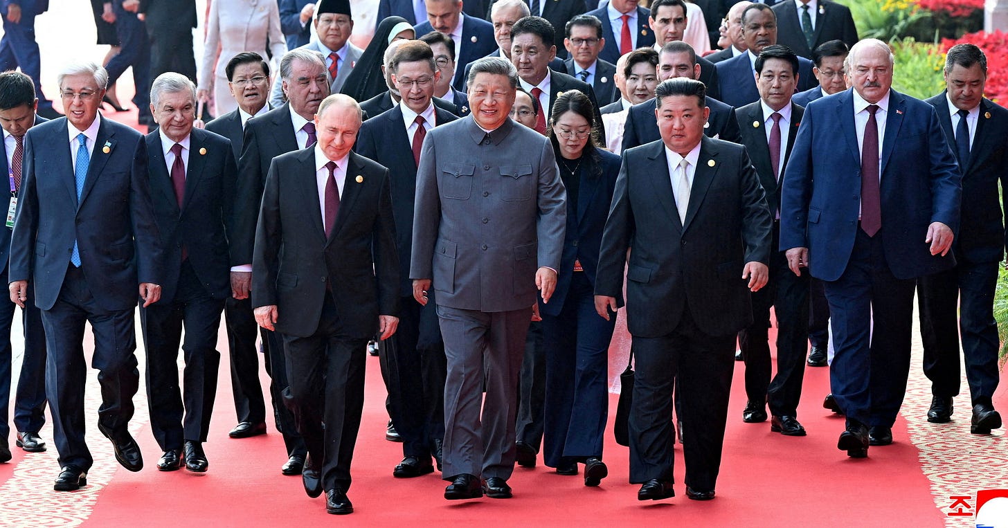 Все началось вчера с нескольких фраз, которыми перебросились российский президент и китайский лидер. Владимир Путин и Си Цзиньпин в окружении лидеров других стран, тяготеющих к Китаю, непринужденно беседовали, поднимаясь к Вратам Небесного Спокойствия в Пекине. Содержание их разговора (здесь без VPN), по всей видимости, не предназначалось для публики, но в этот момент их снимало китайское государственное телевидение, и оно показало эту сцену на весь мир.
