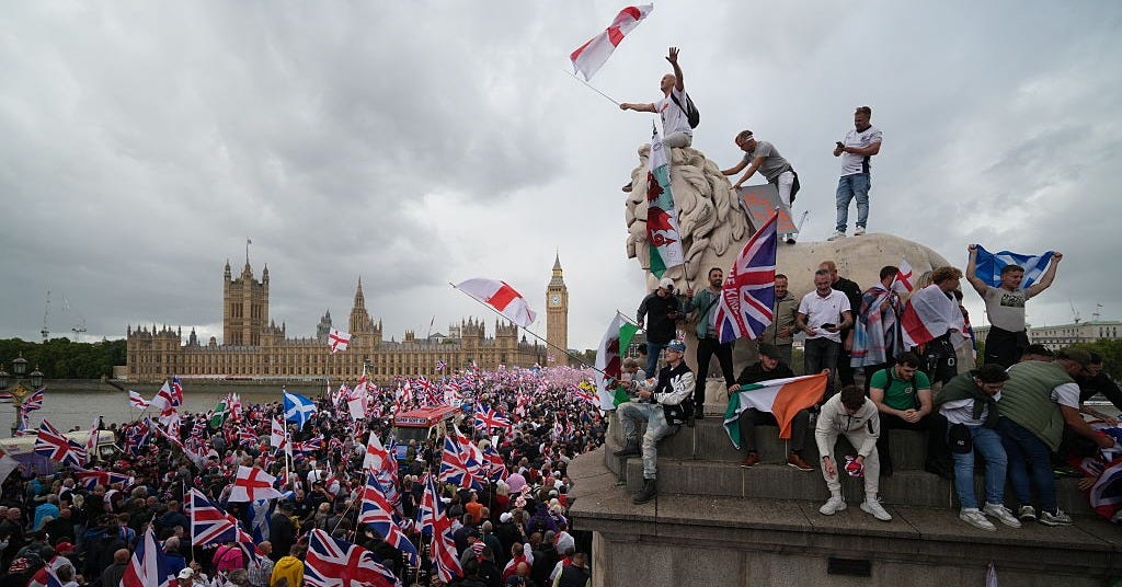 В Великобритании одной из главных новостей выходных стал небывало массовый — больше 100 тысяч участников, а по некоторым оценкам, до 150 тысяч — марш правых по центру Лондона в субботу. Сторонники ультраправого активиста Томми Робинсона вышли на улицы под лозунгом «Объединим Королевство», что звучит довольно провокационно, если знать контекст: Робинсон известен своими антимигрантскими, конкретно — антиисламскими высказываниями.